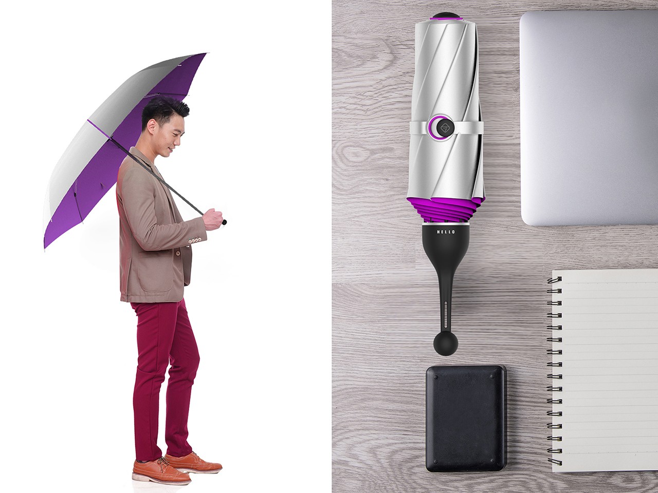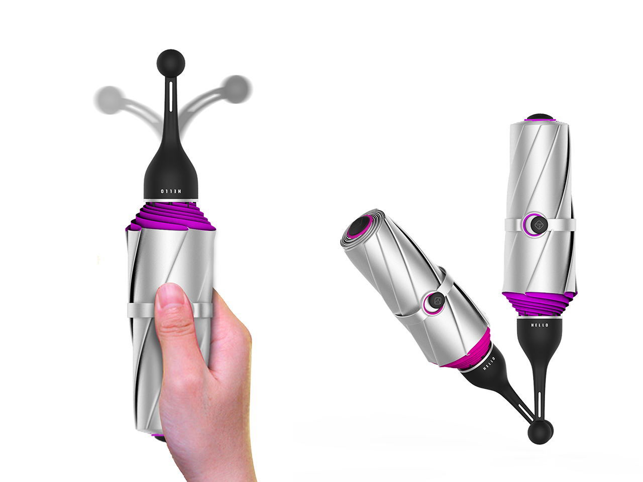 伞把创新的运用了硅胶材质,不仅解决了传统伞类的重量问题,也引领了新的携带及使用方式,整个交互方式变得非常生动有趣。