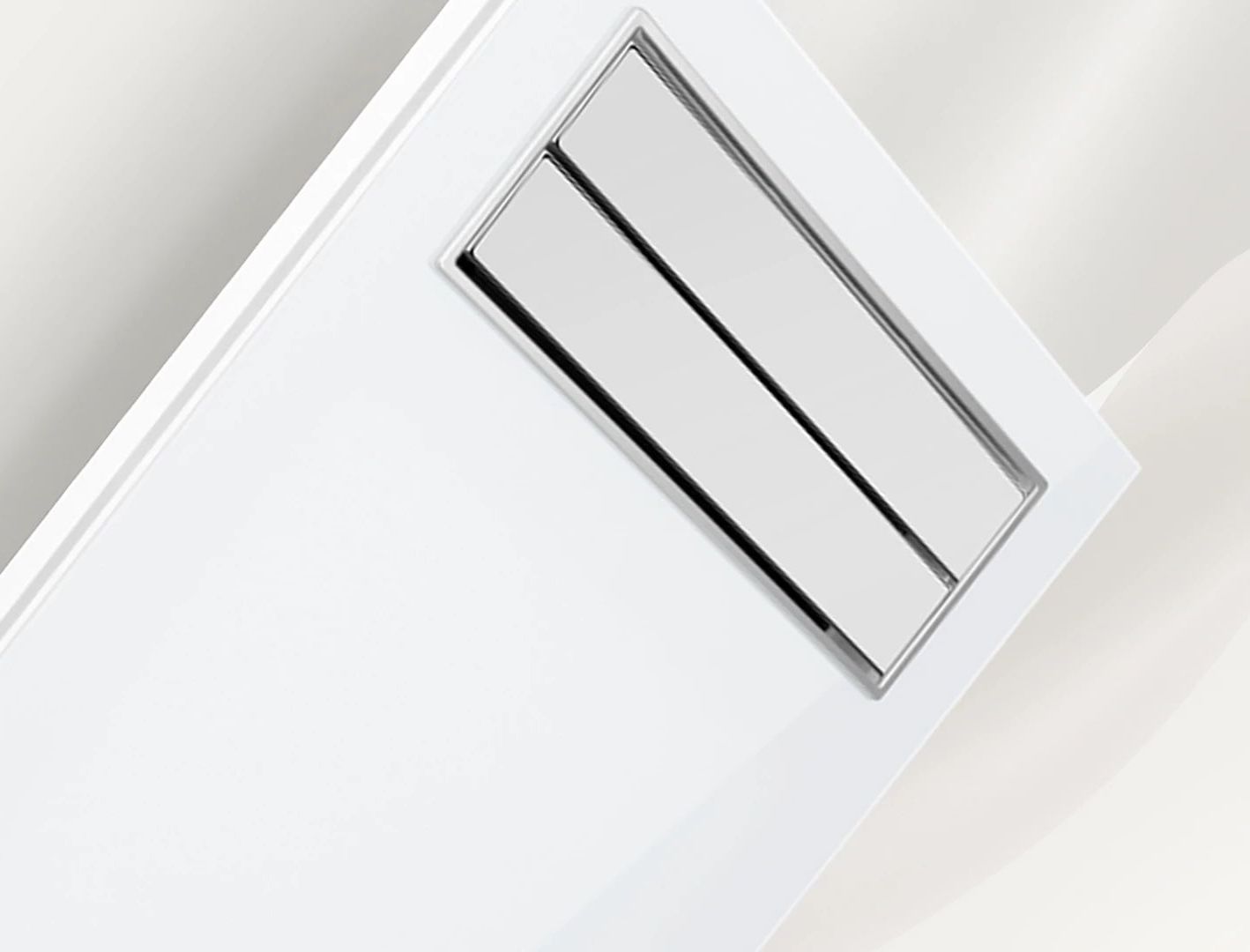 通过一块黑色屏幕显示温度和主要功能状态,使其具有超过同级产品的智能感和直观体验。细磨砂质地的主面板、镜面的双摆叶、屏幕和标志性的拉丝金属装饰条的搭配与碰撞,共同构成了浴霸的出色质感。与良好的性能、直观的操作一并为用户营造舒适的洗浴环境。
