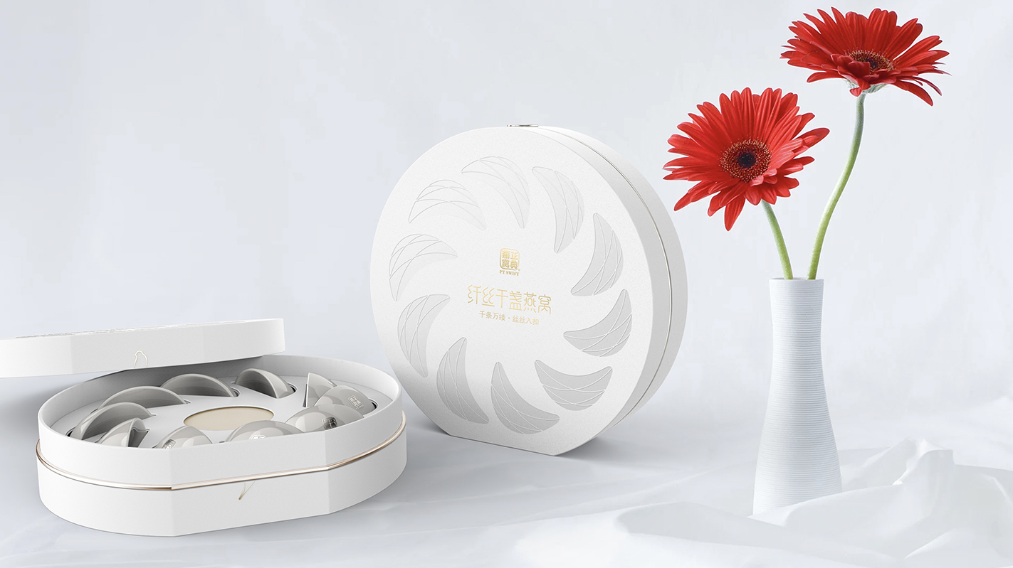 稳重大气,务实不喧哗。为这款燕窝包装定义了“内秀大于外秀”的基调,包装要直观大方不喧闹,同时细节之处又要点睛点题。经过重新设计,内部燕窝在高强度保护的同时,通过精心设置的几个异形视窗展现出来,消费者能直观感知到燕盏丝丝缕缕的细密质感,彰显了原盏燕窝的高品质。