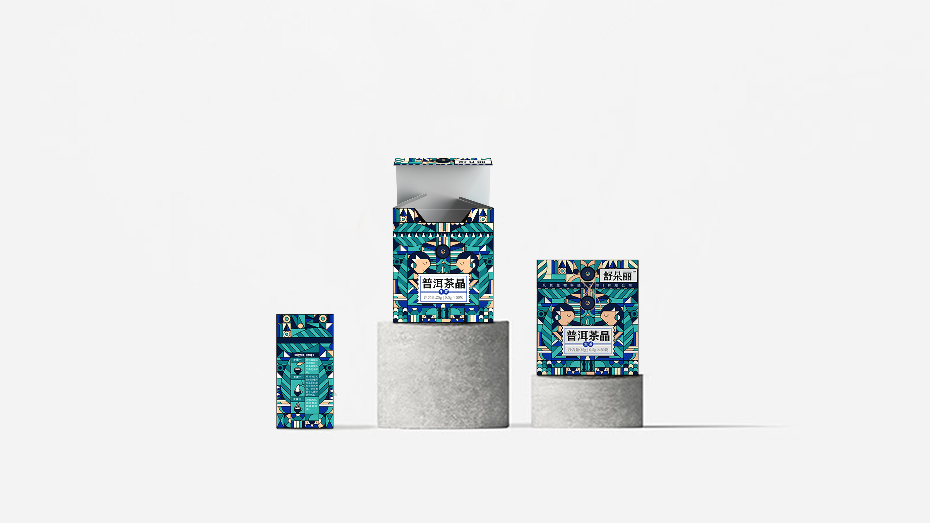 波普风的插画展示,运用强烈的颜色表现,加强产品的视觉感受、体现地域民族的色彩,进而体现来茶晶本身的品质和价值。创新使用线绳缠绕的开盒方式,这一复古的设计提升了开盒的仪式感,带来不一样的消费体验。