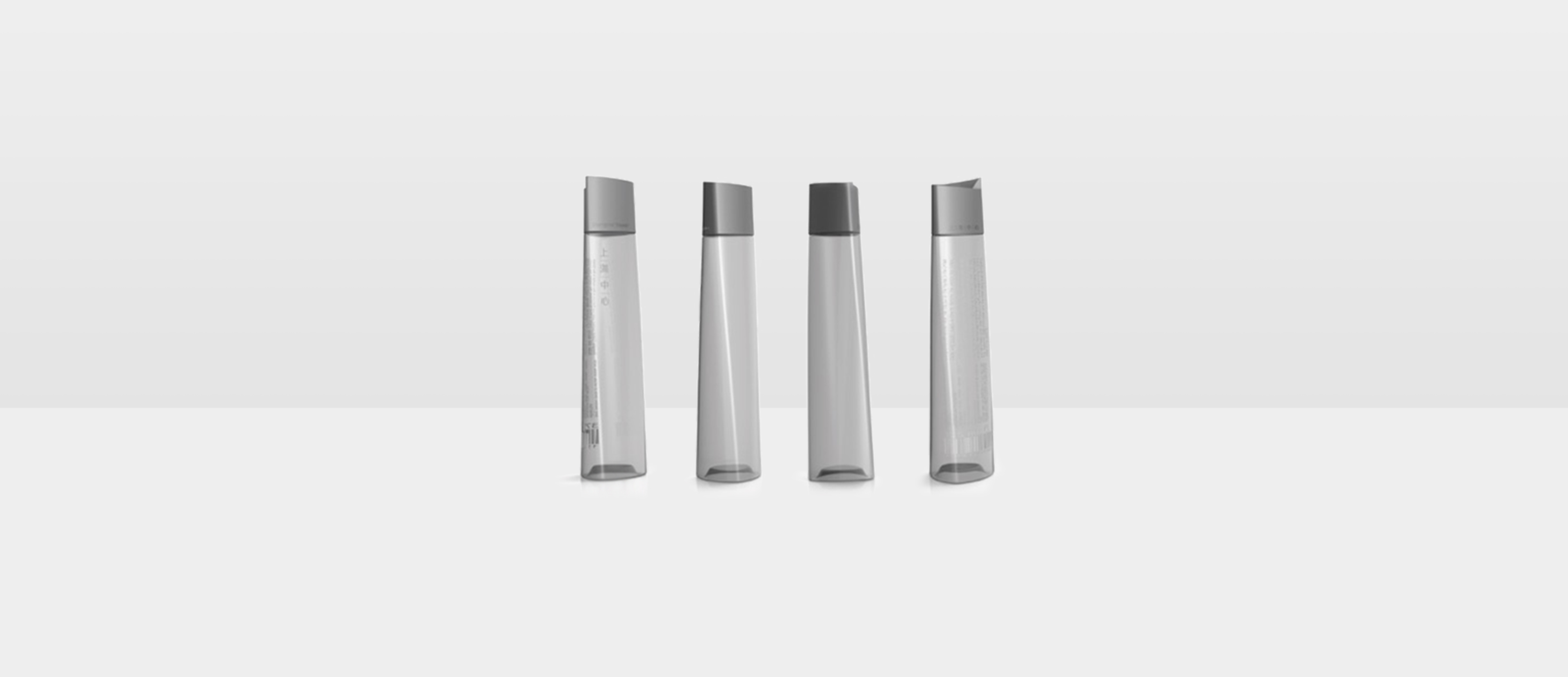 2、根据上海中心国际化形象量身打造的创新的产品CMF(颜色、材料、工艺):通体玻璃的外观对应的是全透明的矿泉水瓶身,对建筑色彩的提炼,是瓶盖处的摩登灰;通体纤长自然通透的材质闪耀着上海独具的时尚,再增加水的交融,呈现光与影的舞蹈。